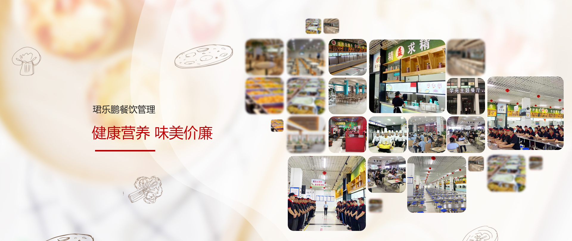 威海珺樂鵬餐飲管理有限公司,是一家面向全國的餐飲管理服務機構,專注學校、醫院、企事業單位的食堂承包與托管,涵蓋膳食管理、食堂規劃咨詢、設計的專業餐飲公司, 在餐飲行業中有著全新的經營理念和多年的實踐經驗,重點推行五常管理及4D管理模式。公司始終堅持“以食品安全求生存,以服務質量求發展”,全面深化改革,持續優化整合資源,自成立公司之日起, 公司以“做好專業食堂承包為服務宗旨,以提高各服務單位用餐質量為已任”,營養合理搭配為企業原則,堅持“健康營養、味美價廉”的八字方針